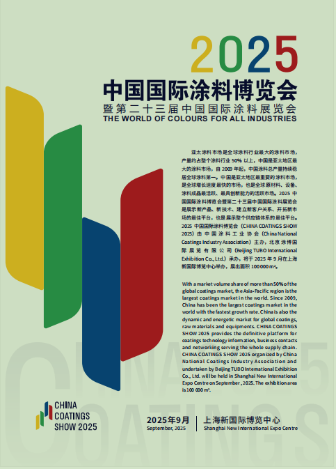 2025年9月3—5日,2025中国国际涂料博览会暨第二十三届中国国际涂料展览会(CHINA COATINGS SHOW 2025)将在上海新国际博览中心N1(原材料)、N2(涂料)、N3(设备)馆隆重召开。
