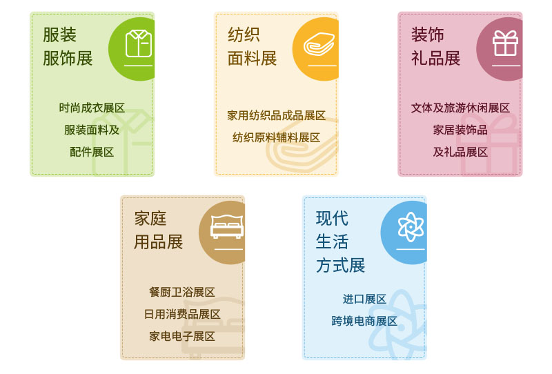 ◆ 服装展区——各类服装成衣、服装面料、时装饰品、成衣配件等。