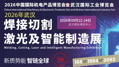 2026武汉焊接切割激光及智能制造展 2026中国国际机电产品博览会暨武汉国际工业博览会 时间:9月22-24号 地点:武汉国际博览中心 参展联系---组166委1994会3093李霞