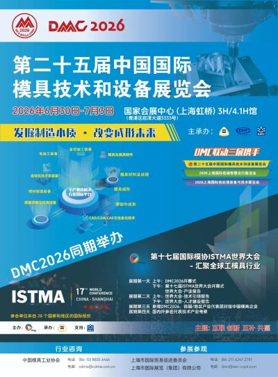 DMC2026第二十五届中国国际模具技术和设备展览会 DMC2026上海国际模具展 时间:2026年7月1-4日 地点: 上海虹桥国家会展中心 展示高科技.推动高效能.成就质优智造
