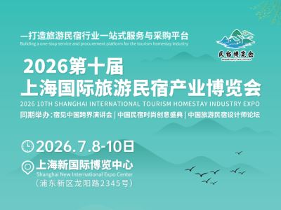 2026第十届上海国际旅游民宿产业博览会 时间:2026年7月8-10日 地点:上海新国际博览中心 同期举办:2026宿见中国跨界演讲会 2026中国民宿时尚创意盛典 2026中国旅游民宿设计师论坛