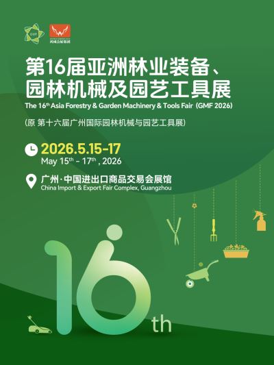 2026亚洲林业装备、园林机械及园艺工具展 (原 第十六届广州国际园林机械与园艺工具展) 时间: 2026年5月15-17日 地点:中国进出口商品交易会展馆(广州·广交会展馆)